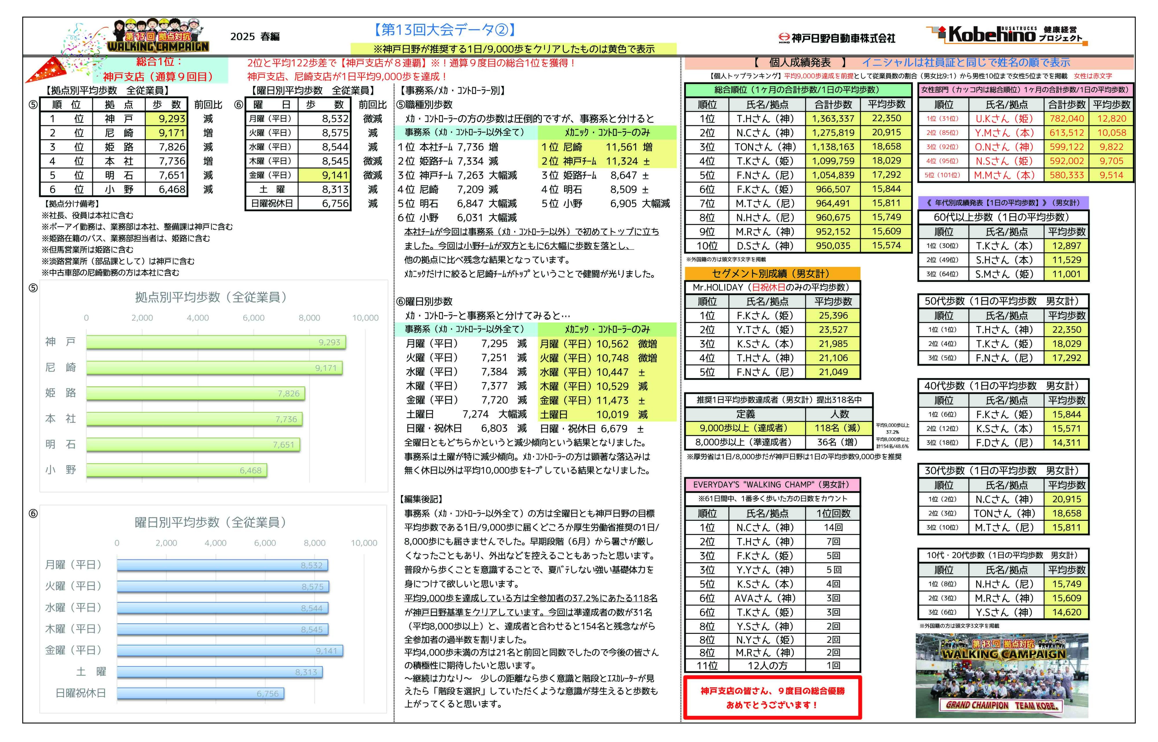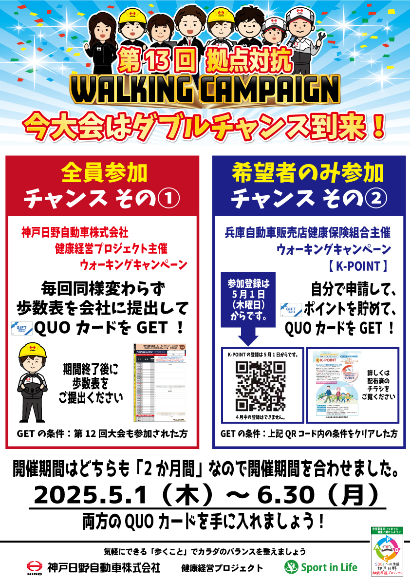 第13回大会は、兵庫自動車販売店健康保険組合様が実施された「K-Point」というウォーキングイベントが同時期にありましたので、コラボイベントとして2か月間実施しました。