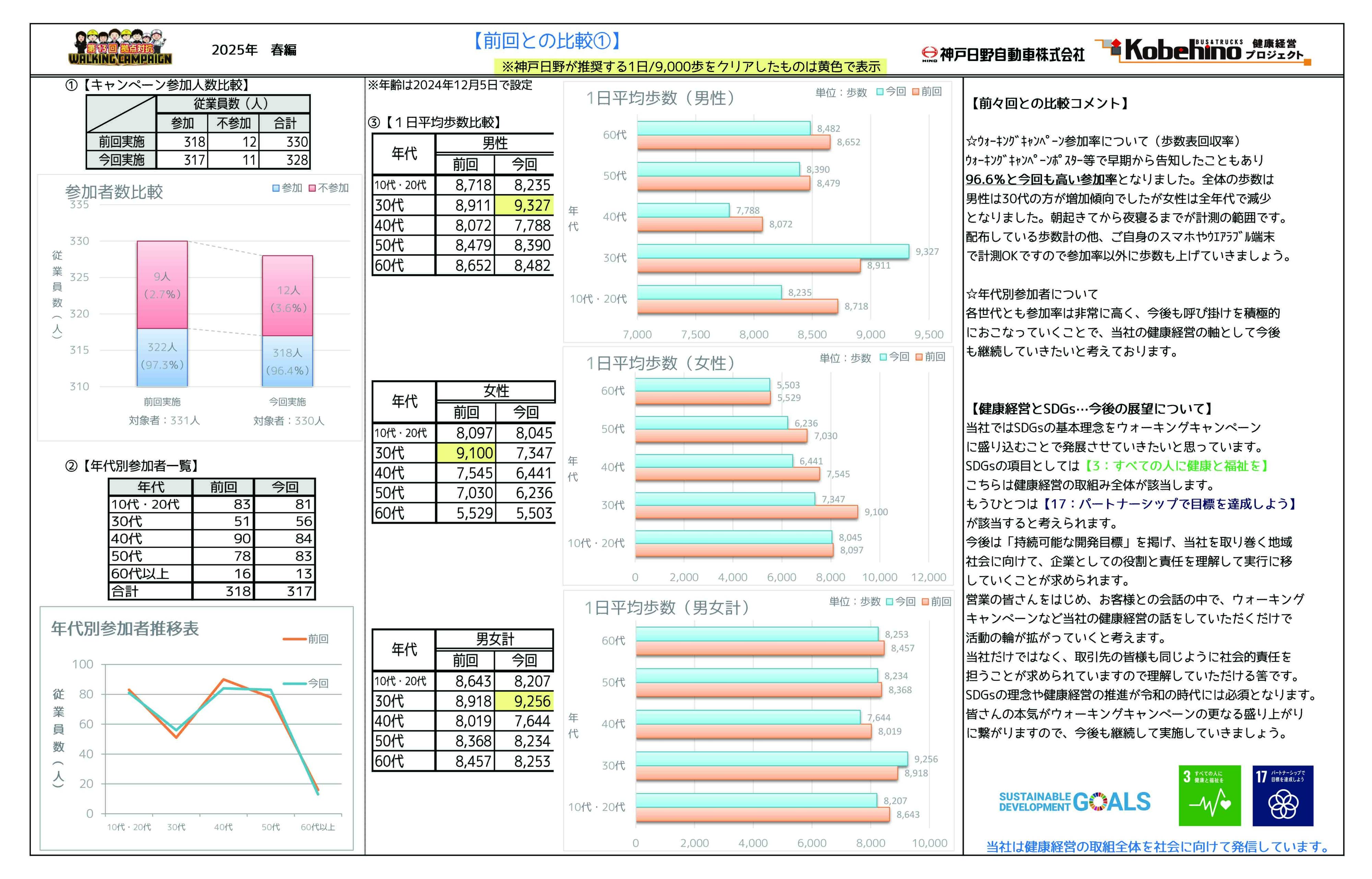 2025年5月1日から6月30日までの2か月間、全従業員で取り組みました第13回ウォーキングキャンペーン(2025春編)について、結果を総評としてまとめました。