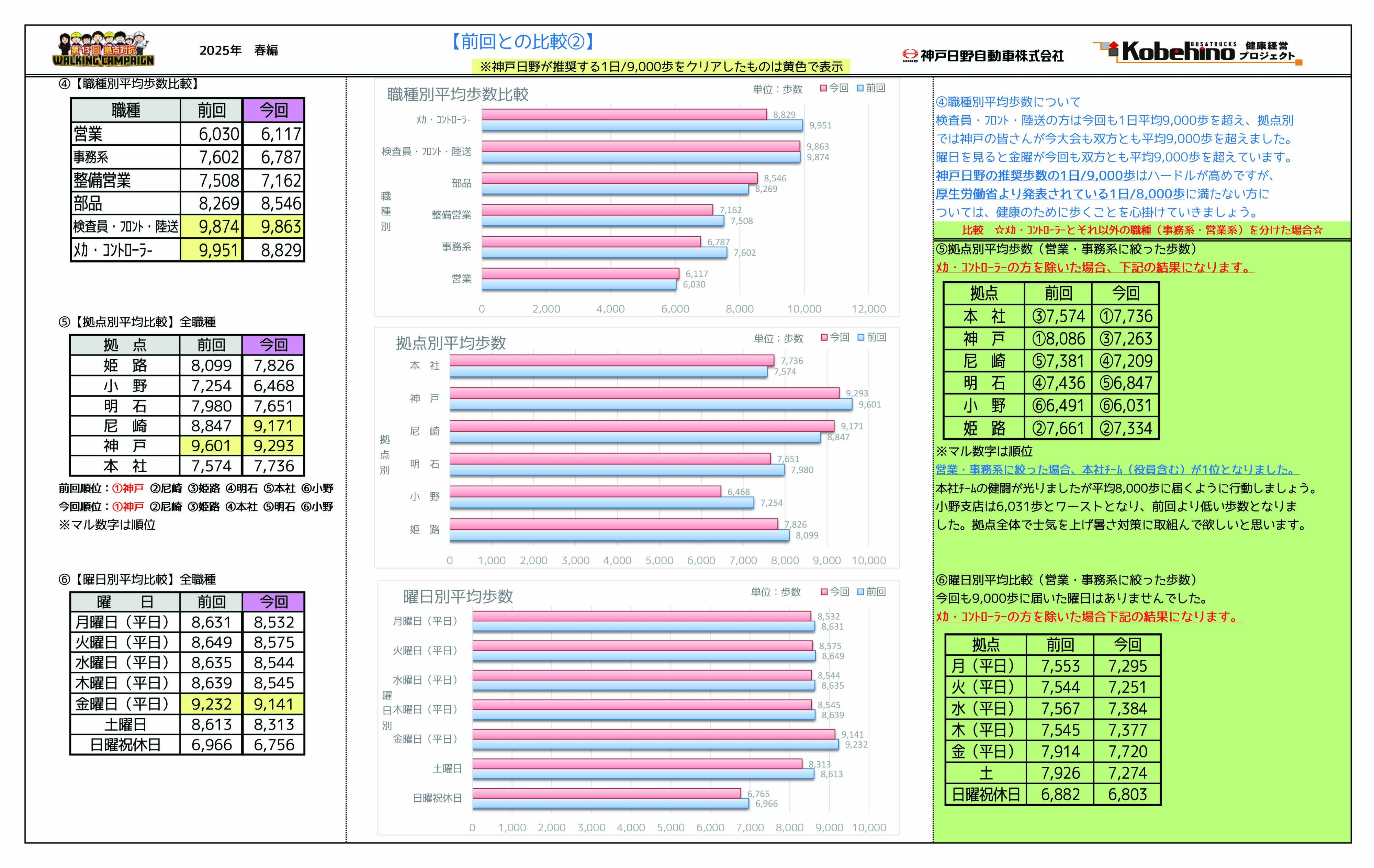 メカニック・検査員・フロント・陸送の方は1日平均10,000歩を少し割りましたが、高い数値をキープしています。